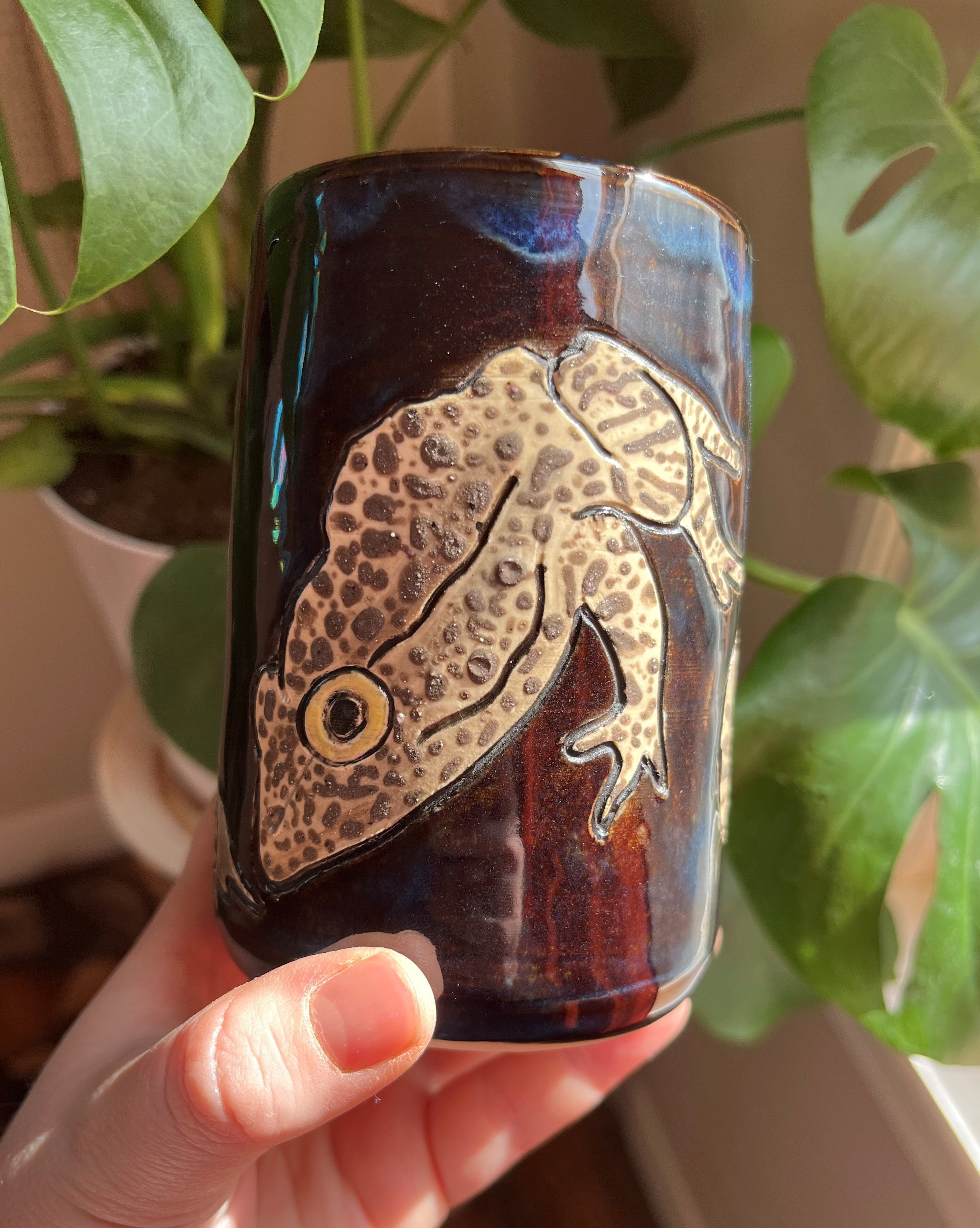 Carved mugs are available in a variety of styles with different animals! Selection changes regularly.